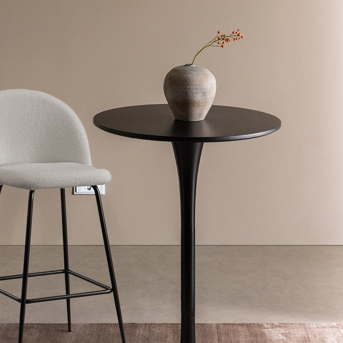 Le mange-debout Noema s’impose comme une pièce maîtresse pour l’intérieur de vos événement. Son piètement tulipe noir confère une silhouette organique et une présence élégante qui s’adapte à vos aménagements.